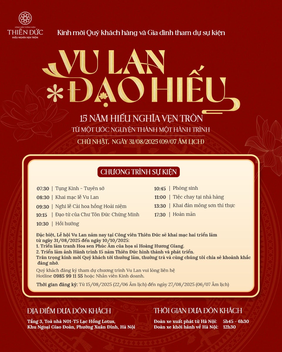 Đăng ký chuyến đi thăm mộ miễn phí Thứ Bảy, Chủ Nhật hàng tuần: 1800 88 88 66