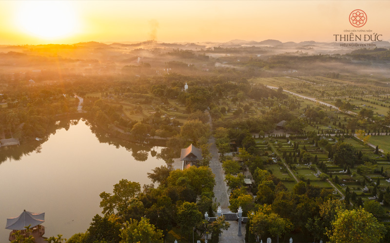 Khác biệt hoàn toàn với quan niệm nghĩa trang truyền thống, Công Viên Thiên Đức là mô hình nghĩa trang sinh thái kết hợp yếu tố thiên nhiên, môi trường và nghệ thuật kiến trúc. Điều này không chỉ giúp người đã khuất được an nghỉ trong cảnh quan thanh nhã, mà còn thể hiện lòng hiếu đạo, sự văn minh trong nếp sống của người Việt hiện đại.